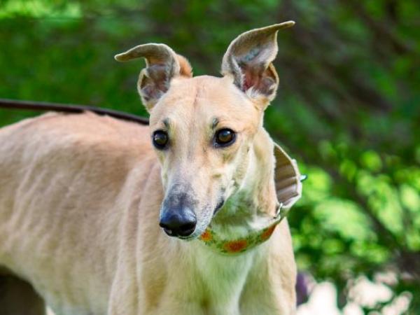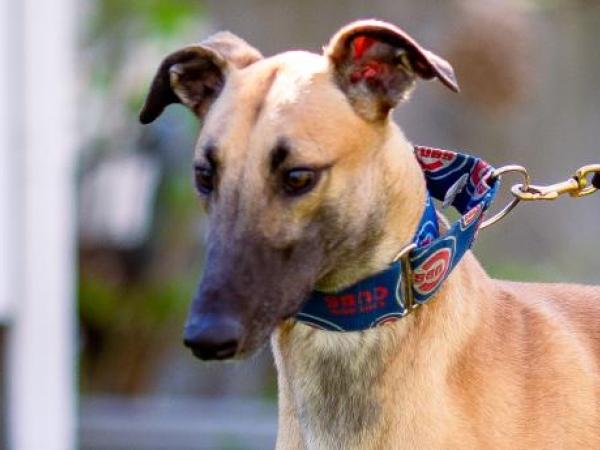 A new hound that we're still learning about. Kinsley is a young sweetheart that just isn't fast enough for the racetrack.