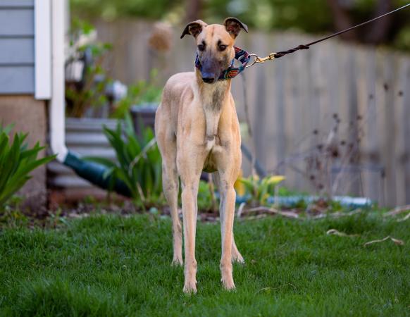 A new hound that we're still learning about. Kinsley is a young sweetheart that just isn't fast enough for the racetrack.